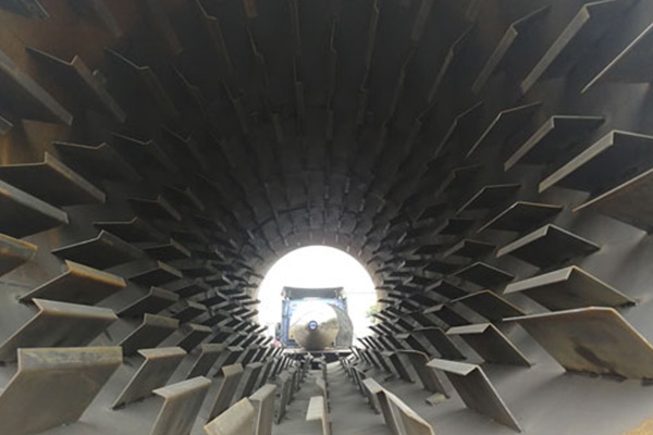 設備安裝調試成功后,首先開始主機電機,使主機開始旋轉,并啟動噴煤機使熱源系統開始工作產熱,余熱筒體幾分鐘后開始往給料機種送煤炭,給料機均勻地將煤炭鋪在輸送帶上,由輸送帶通過下料口將無煙煤送入主機內部。到達主機內之后,煤炭先與熱氣流進行接觸,表面的水分會很快蒸發,在前端導流板的作用下,會將堆積的無煙煤導向烘干機中部,到達中部后揚料板將煤炭帶起至高處后落下,在下落的過程中繼續與熱氣流接觸,這個階段是烘干煤炭比較重要的一個階段,它能使水分均勻地揮發。烘干后的煤炭會在筒體斜度及旋轉的共同作用下到達烘干機的尾部,從卸料口落下,經輸送帶傳送至料倉內。烘干機內的各種氣體和粉塵會被風機抽出,經過除塵器的凈化達到標準后排放。